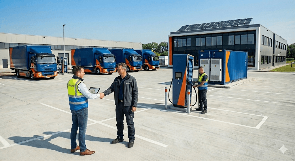 Wir planen, finanzieren und betreiben Ihren Energy Hub mit PV, Batteriespeicher und Ladeinfrastruktur – für niedrigere Energiekosten, planbare Elektrifizierung und einen zukunftssicheren Standort.